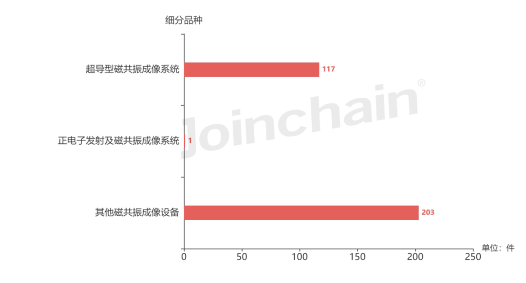 据中标结果显示,超导型磁共振成像系统的中标数量最多,中标数量为117.0件;其次是正电子发射及磁共振成像系统,中标数量为1.0件。