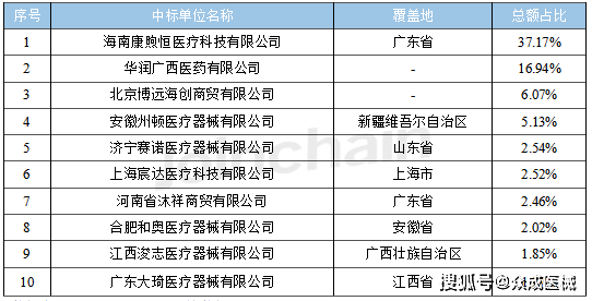 根据中标结果,2023年5月总销售额最高的中标单位是海南康煦恒医疗科技有限公司,销售额占比为37.17%;华润广西医药有限公司排名第二,销售额占比为16.94%;排名第三的是北京博远海创商贸有限公司,销售额占比为6.07%。
