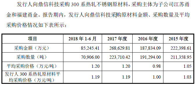 国内300 系热轧不锈钢原材料供应商相对集中,且采用市场每日报价制度,市场报价比较公开透明。报告期内,公司对鼎信科技300 系热轧原材料的采购定价遵循市场化原则,在鼎信科技每日市场报价的基础上协商确定。鉴于300 系热轧原材料价格具有较强的波动性,一年中不同时间的采购价格存在一定的差异。