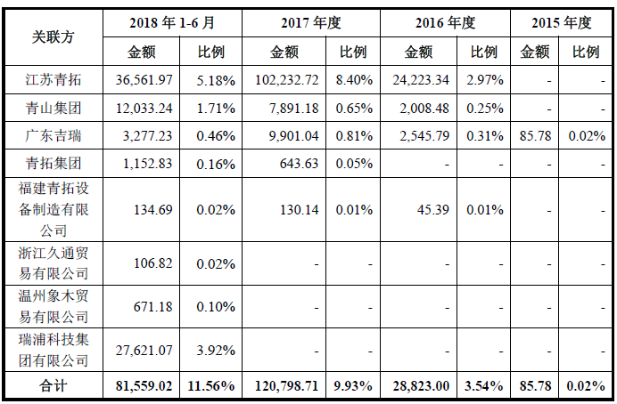 招股说青山集团子公司鼎信科技持有发行人重要子公司福建甬金30%股权,发行人与青山集团及其下属企业存在大量购销交易,报告期各期关联采购占比较高。