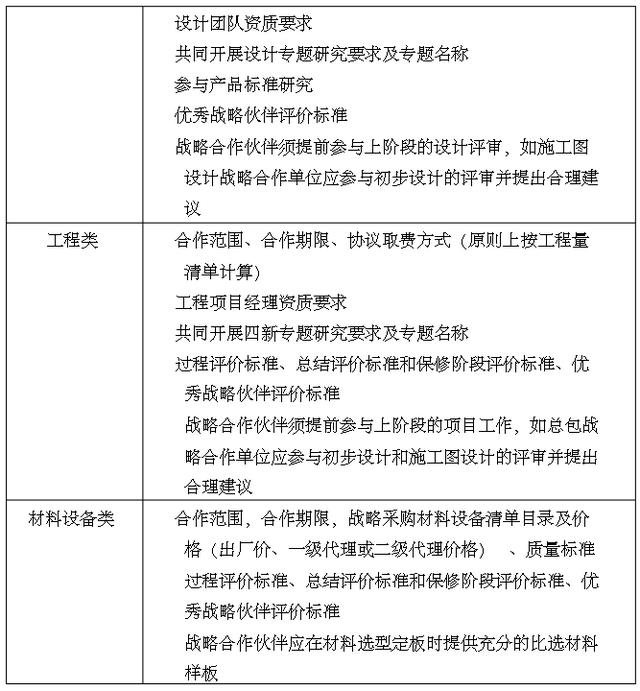 3.12.1. 在招标入围单位确定后,集团运营管理部以《战略合作协议》模板编制《战略合作框架协议》(作为招标文件的附件) 。战略合作的要点如下: