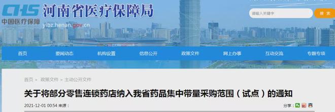 12月1日,河南医保局发布了关于将部分零售连锁药店纳入河南省药品集中带量采购范围(试点)的通知。