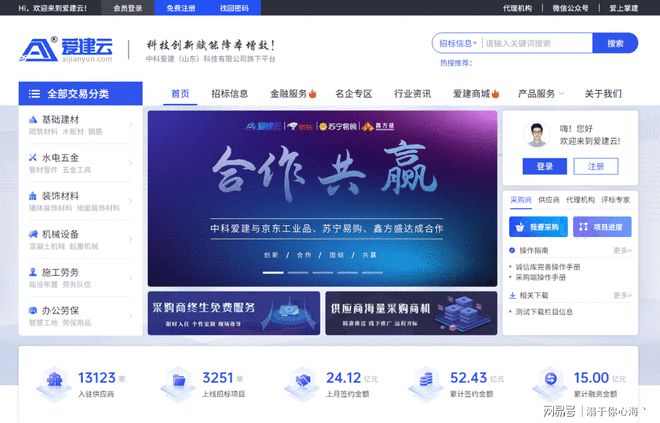 爱建云平台是国内领先的采供协同和供应链管理平台。专注于用云计算、互联网和大数据技术为企业提供协同供应和供应链管理服务,坚持开放、共享、互联、集成的产品设计理念,以用户为中心,注重招标采购效果和运营效率。努力打造基于SaaS、大数据和平台运营的“知”“行”平台,为用户提供专业服务和全流程电子招标采购解决方案。爱建云是一个集招投标、询价、团购、 MRO商城、供应链管理、供应链金融于一体的工业互联网平台。是一站式工业服务平台,主要经营五金工具、安防劳保、电工电气材料、消防暖通、机械设备、灯具照明、油漆化工、钢材等建筑材料。以低廉的价格为您提供便捷的一站式服务。爱建云是一家专业的网上电子招标交易平台和网上采购供应交易平台,为招标代理机构、买家、供应商提供全程电子招标交易和一站式采购平台解决方案服务。爱建云利用云计算大数据技术为合作客户提供市场资源服务、供应商管理、专家资源服务、招投标大数据服务、招投标内控管理服务、采购管理平台解决方案和企业采购全过程监管。爱建云电子招投标平台是一个平台运营和大数据技术支撑的业务平台。是与中国公开招标服务平台相连的、与机电产品国际招标监督管理平台相连的电子交易平台。米乐m6平台官方版爱建云电子招投标平台体现了公司多年的技术积累和运营经验。平台配备各种交易应用、辅助应用和智能商务应用。交易应用可满足设备、材料、工程、服务等各种招标业务,支持公开招标、邀请招标、资格预审招标、询价、单源采购、竞争性谈判、竞争性谈判等各种招标采购方式。竞价采购辅助应用和商业智能应用为用户的在线业务管理提供了很好的支持。爱建云电子招投标平台八大亮点:1.积木式,每个应用可以灵活组合无缝链接;用户需要选择较少的投资,快速上线;不需要勉强适应固化的全流程招投标平台;2.内置机电产品国际招标投标专用平台,直接连接监管平台和公共服务平台;具有“一站式”服务的优势;3.国内招标平台适用于各类标的招标和政府采购招标项目,并与国家招标公共服务平台对接;4.SaaS服务模式保证了应用模块和工具服务不仅方便易用,而且保证了持续的迭代更新和优化;5.配备专用接口,可以连接用户已经和将要拥有的各种软件系统,突破信息孤岛,内外高效协作;6.支持招标代理机构和企业通过招标方式采购非法定招标的货物,帮助招标代理机构拓展业务;7.支持招标代理机构通过各种电子交易方式(如竞争性谈判、咨询、比价、单源等)为委托方采购货物; 8.积累多年的交易数据、产品数据、专家数据,为用户提供招标活动和企业采购所需的数据服务,解决招投标双方的信息不对称问题。