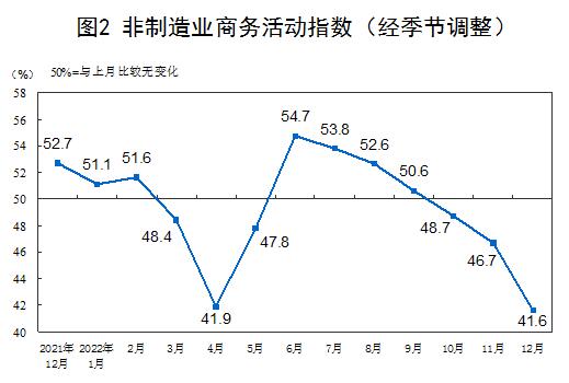 12月份,非制造业商务活动指数为41.6%,比上月下降5.1个百分点,低于临界点,非制造业景气水平有所下降。