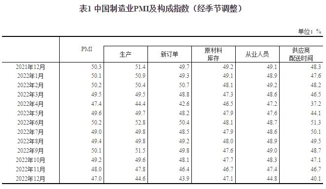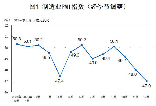 12月份,制造业采购经理指数(PMI)为47.0%,比上月下降1.0个百分点,低于临界点,制造业生...