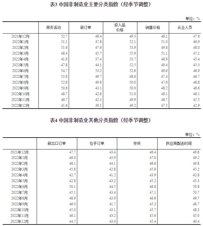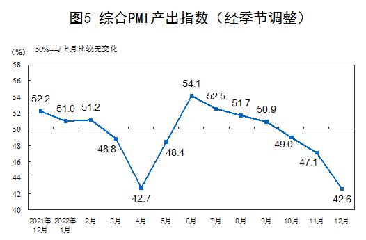 12月份,综合PMI产出指数为42.6%,比上月下降4.5个百分点,低于临界点,表明我国企业生产经营活动总体有所放缓。