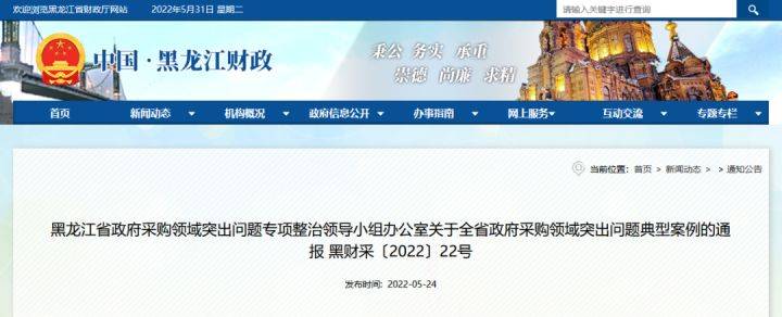 近日,黑龙江省政府采购领域突出问题专项整治领导小组办公室发布信息,为进一步推进全省政府采购领域突出问题专项整治工作,规范全省政府采购秩序,持续优化全省政府采购营商环境,通报第三批10个典型案例: