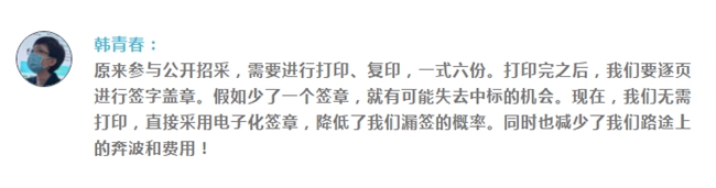 韩青春说,利用这个网络平台,他们可以足不出户就完成投标工作,米乐m6从开始筹备投标到最后中标所用时间比原来缩短了一半,整个过程非常顺利。