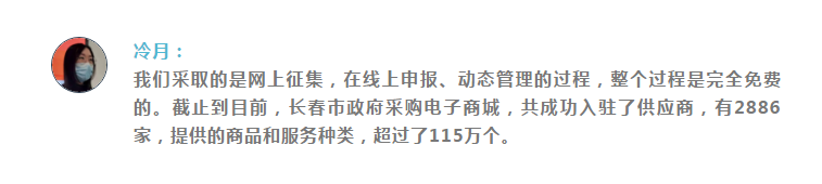 今年1月,长春市政府采购电子商城正式上线,全流程电子化政府采购方式使采购流程由“面对面”变为“键对键”。供应商企业甚至足不出户,即可完成项目招投标。